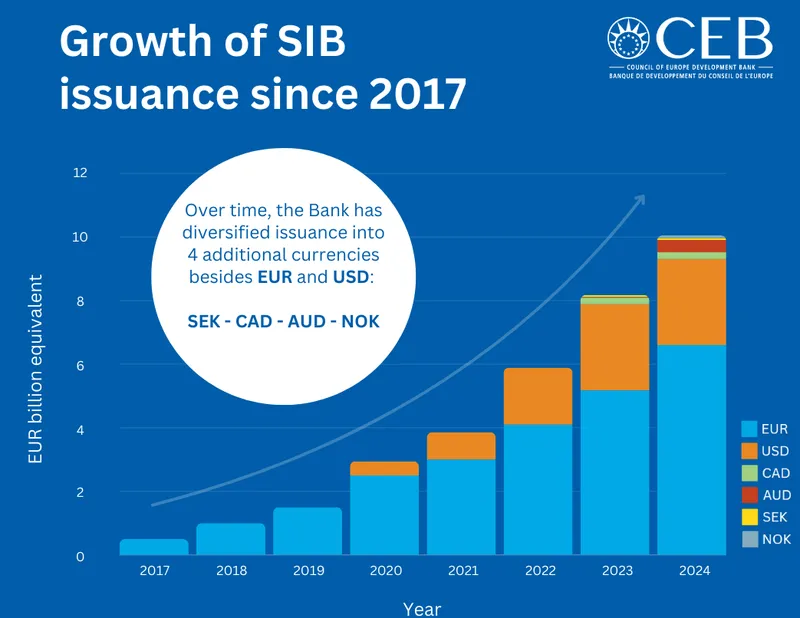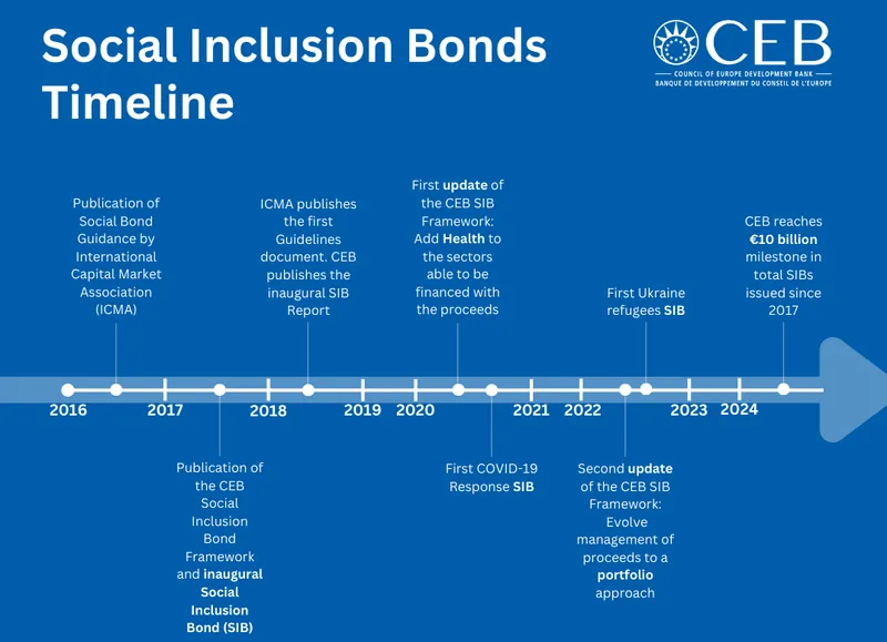 Since its inaugural Social Inclusion Bond (SIB) issuance in 2017, the Council of Europe Development Bank (CEB) reached the €10 billion milestone this year. This is an important achievement for the Bank, as it showcases not only our early commitment to the development of a social bond market, but also the keen interest from the investor community in our trademark financial product. In this blog, I would like to bring you along a pioneering journey that started almost a decade ago.